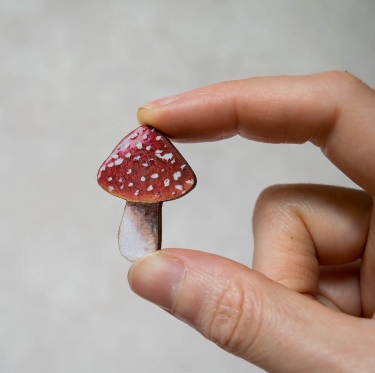 A little charming red spotted mushroom brooch, waiting to be pinned to your clothing attire for all to admire!