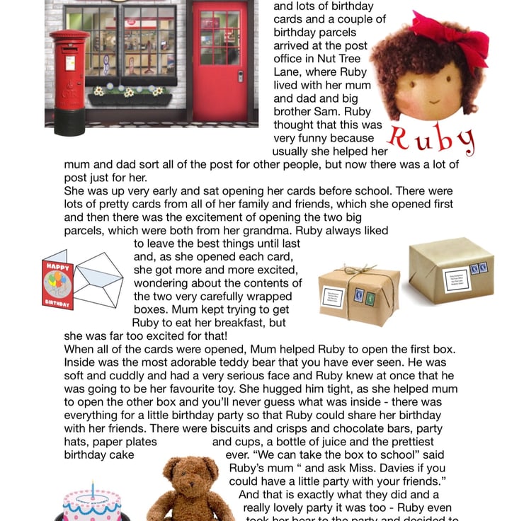 There are other children in Maisy’s class at school - Violet, Billy with his pet rabbit, Amber, Tilly, Rosie and her kittens, Amelia, Ruby, Marigold, Bobby with Max the dog, and the twins Oliver and Olivia, who have a puppy called Oscar. The dolls are all 26cm tall and baby Daisy is 16cm. Maisy and Mo love nothing more than having adventures with their friends. You can read about their adventures on my Facebook and Instagram pages - Maisy Muffin Rag Dolls and on my Mulberry Green Pinterest boards.
