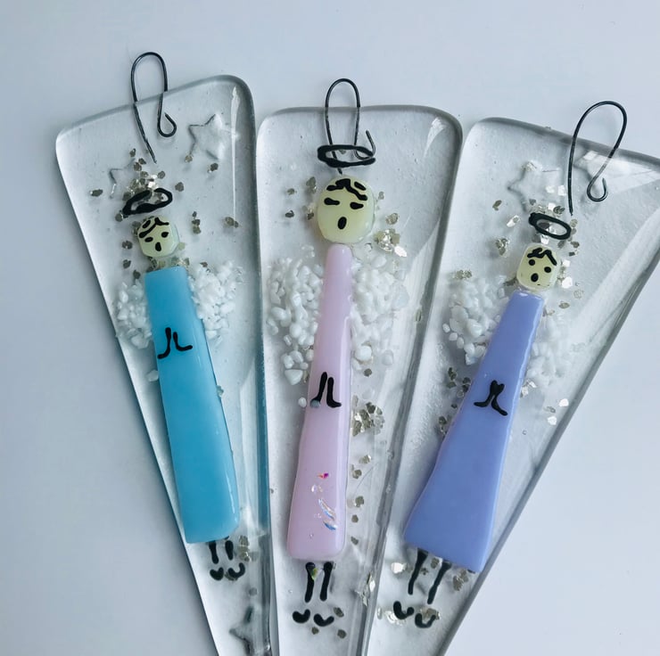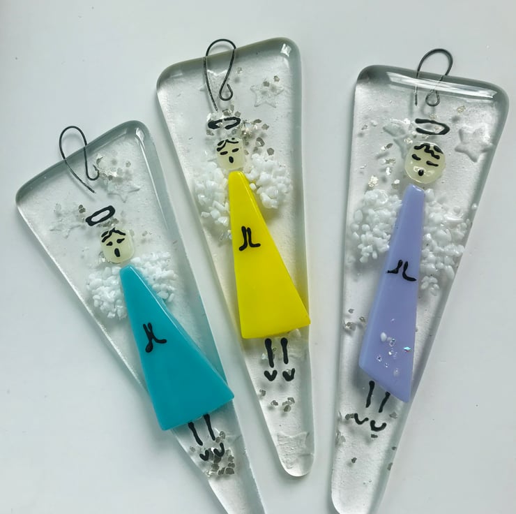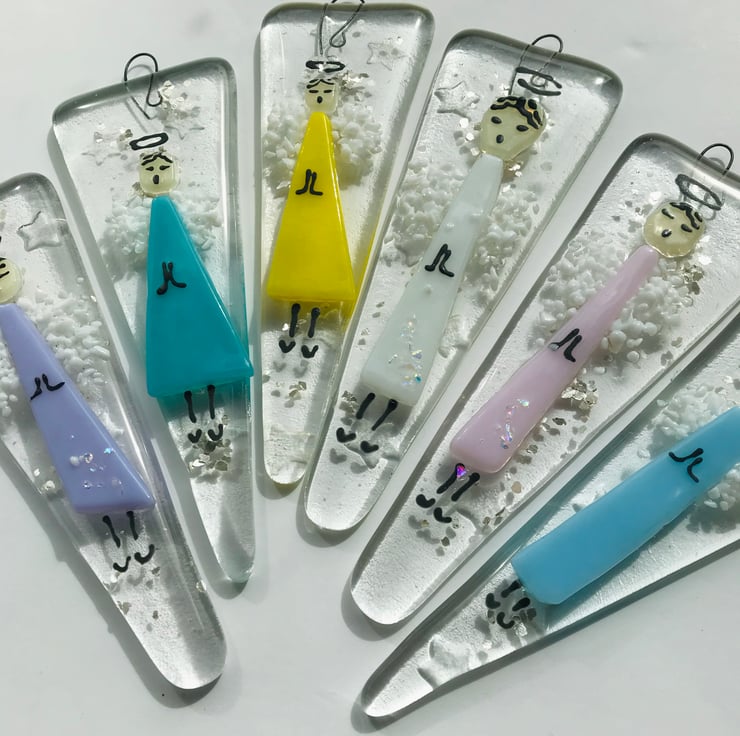 These contemporary fused glass Angels would be as lovely hanging in the window as they would be in your Christmas tree. These Angels are for life not just for Christmas.