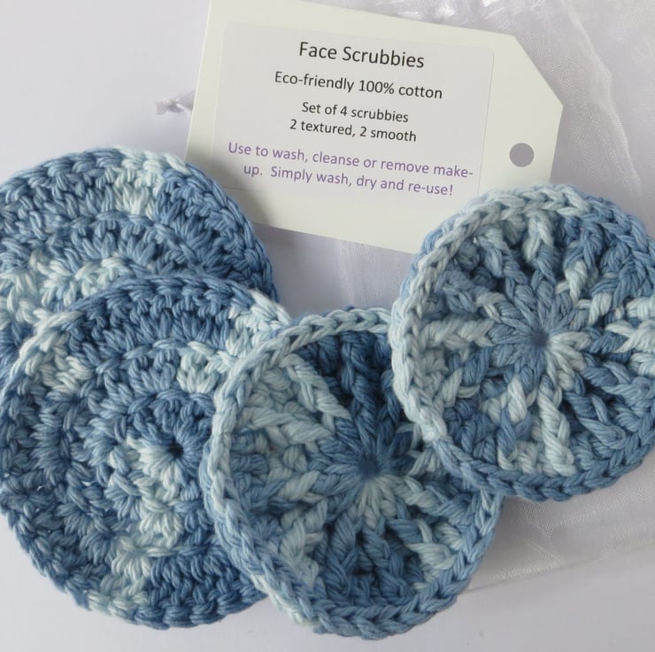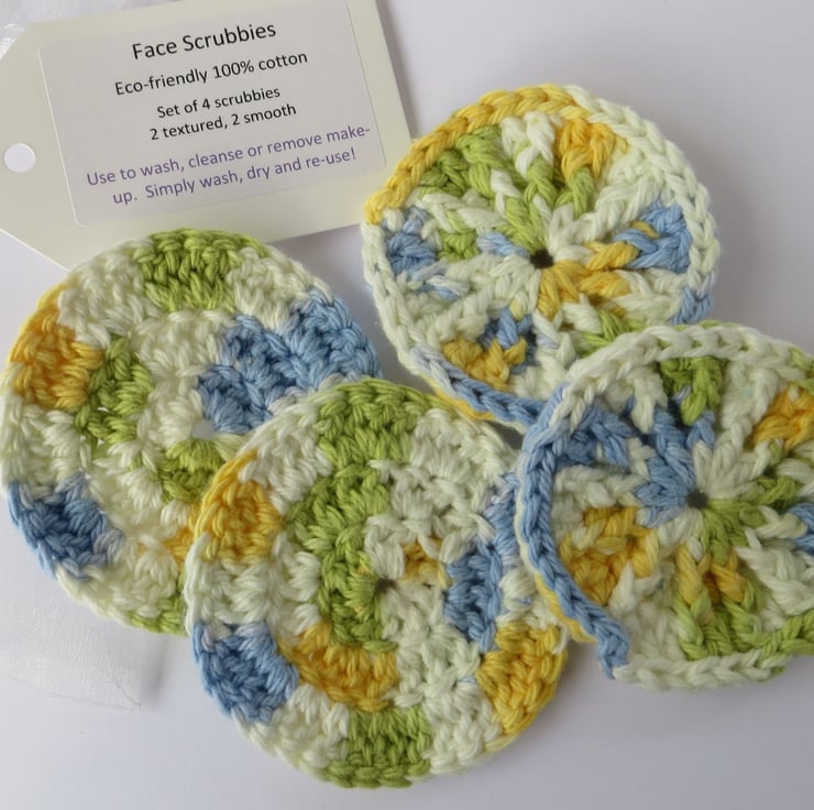 Made from a thick, soft 100% cotton yarn, face scrubbies can save you money on makeup wipes and disposable cotton pads and are good for the environment too.