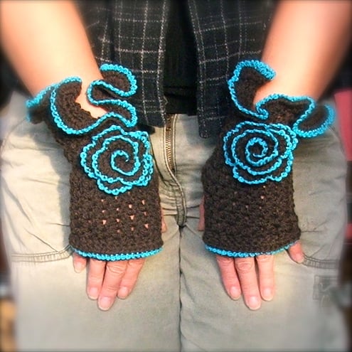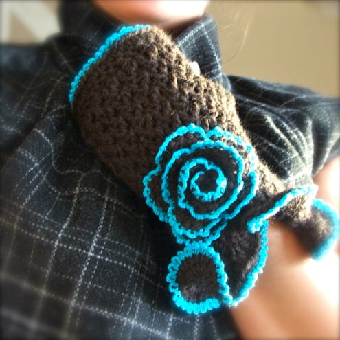 the gloves can be made in almost any color combination and in the size you like, with or without the flower...