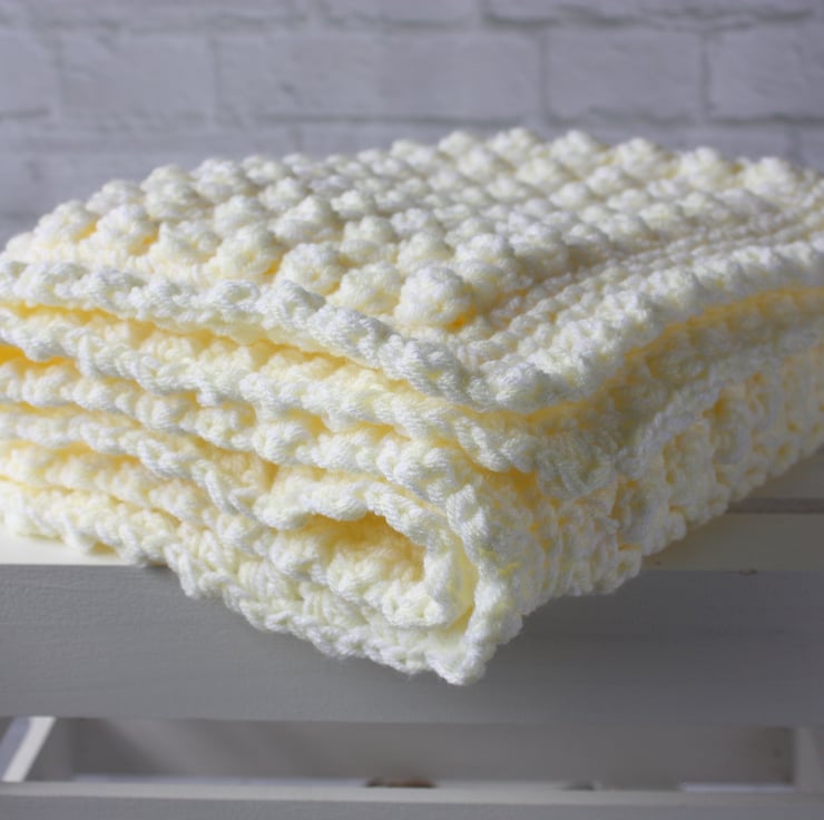 Made with two strands of yarn together creating a thick luxurious baby gift.