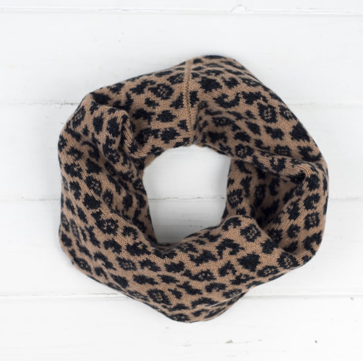 Stylish snood in our Leopard pattern handmade using a soft, rich lambswool this makes the perfect accessory for autumn/winter.