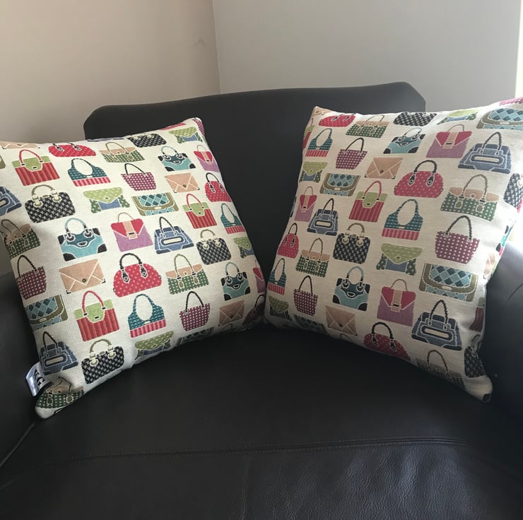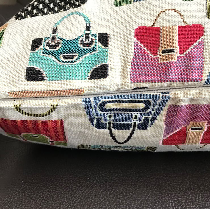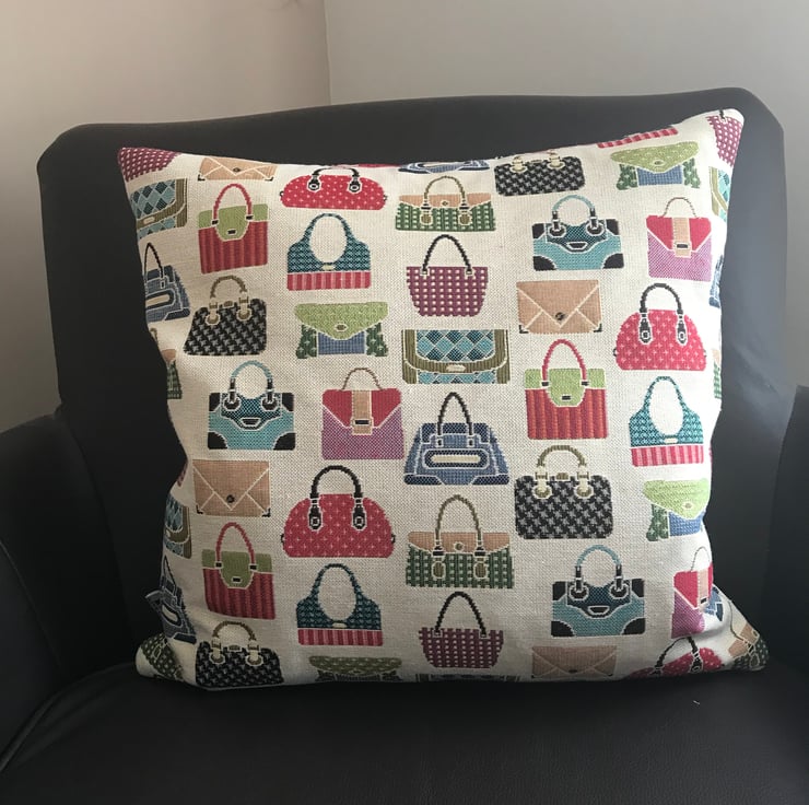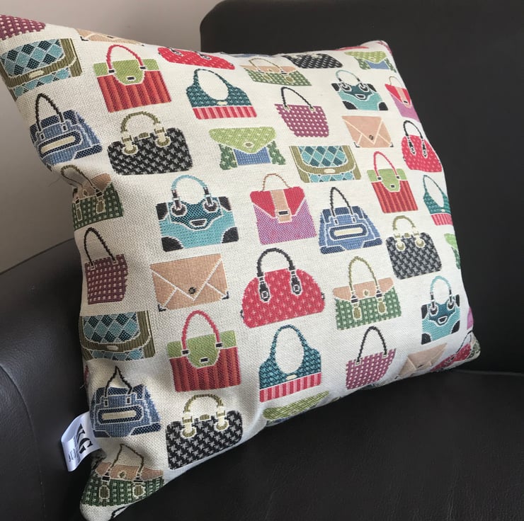 This luxury cushion is made with tapestry fabric with a hand bag design the patterned fabric is on each side of the cushion.