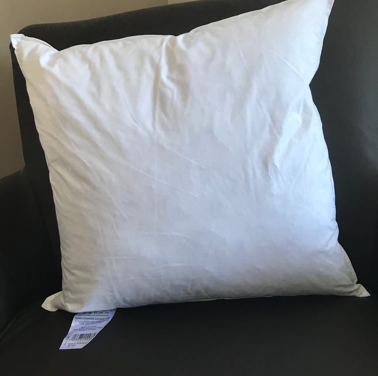 It comes with a square duck feather pad 45cm x 45cm, and with a zip opening and overlocked seams with a Kind Crafts tag logo on the side.