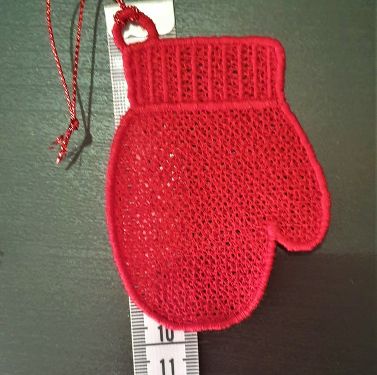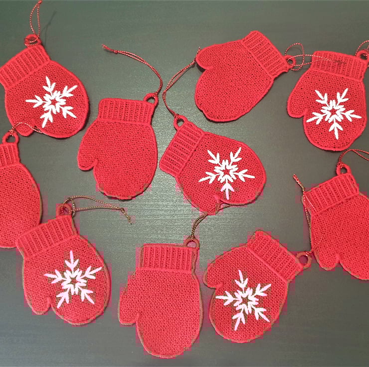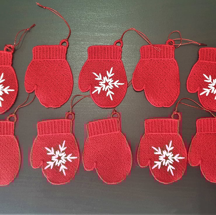 Set of 10 embroidered Mitten Christmas Decorations