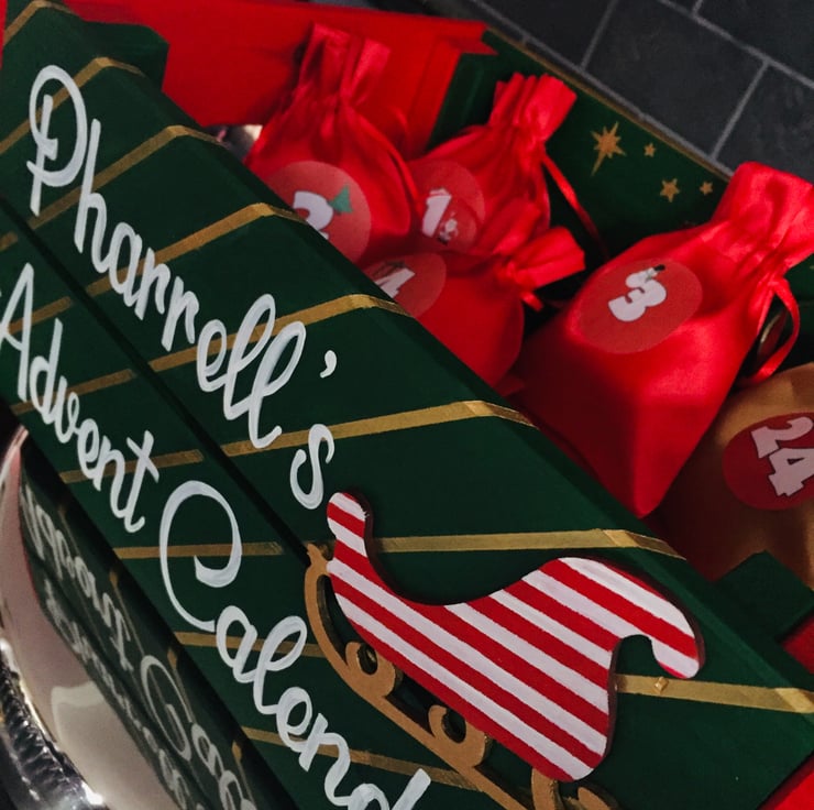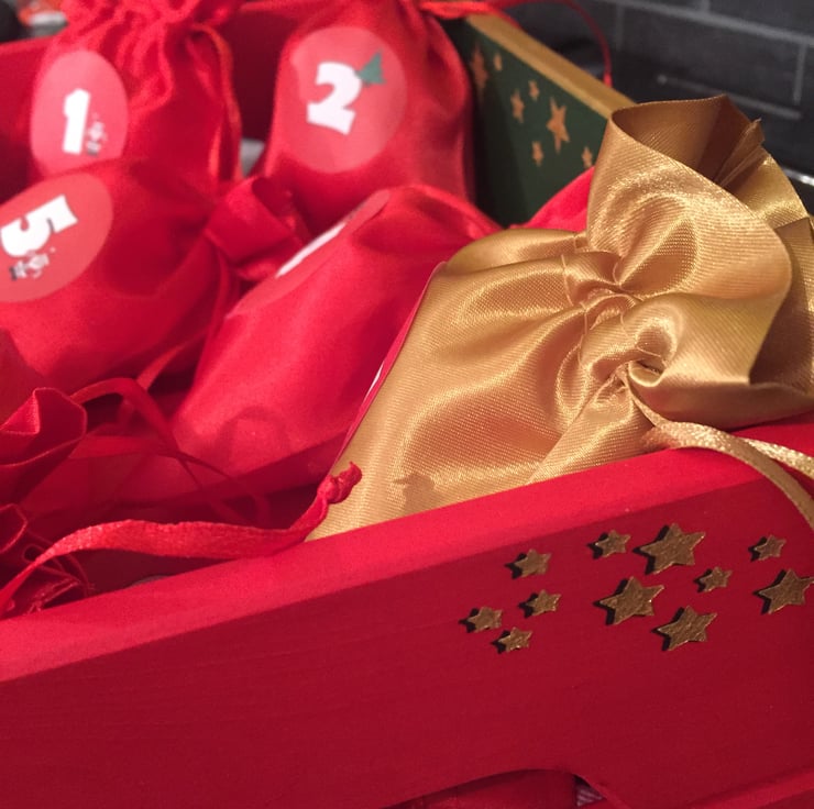 24 red Santa Sacks to fill one for each day throughout December, Number 24 is gold for that extra special surprise gift