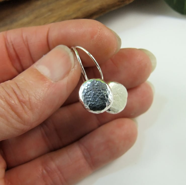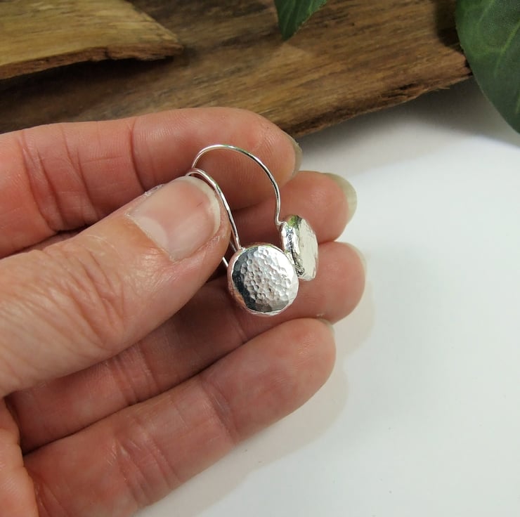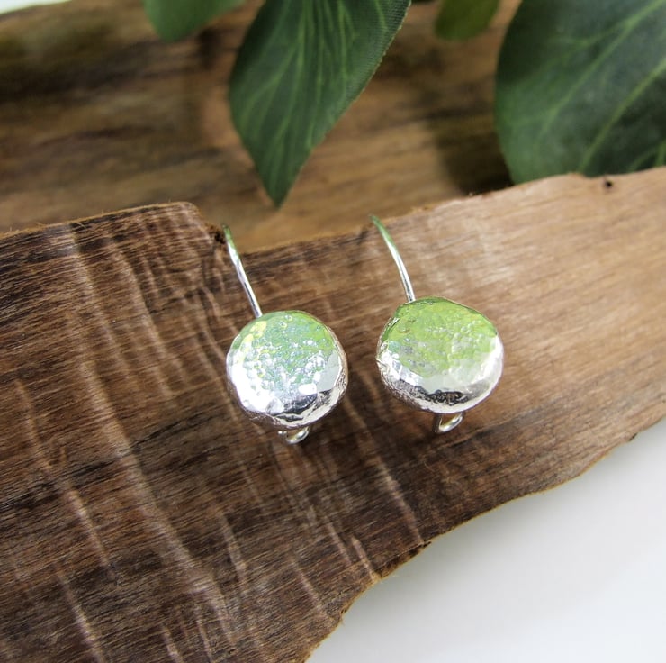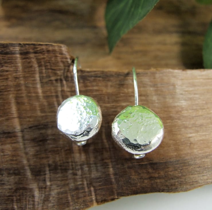 I have created the nuggets from recycled silver that has been heated to melting point when it narturally forms into a nugget. I have soldered these to my own handcrafted kidney earwires.