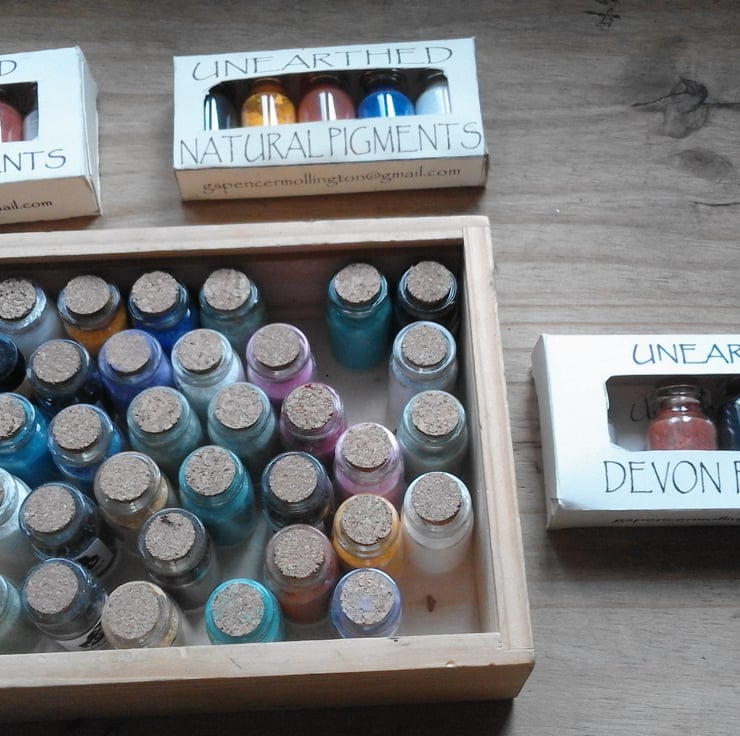 Unearthed Natural pigments are elemental components of colour, a unique range of earth colours from near and far. Free from artificial fillers and preservatives and therefore safe. After foraging, they are processed into a fine powder ready to be mixed with a binder of your choice. Suitable for OIl, Watercolour, Egg Tempera and Acrylic or used raw as a pastel.