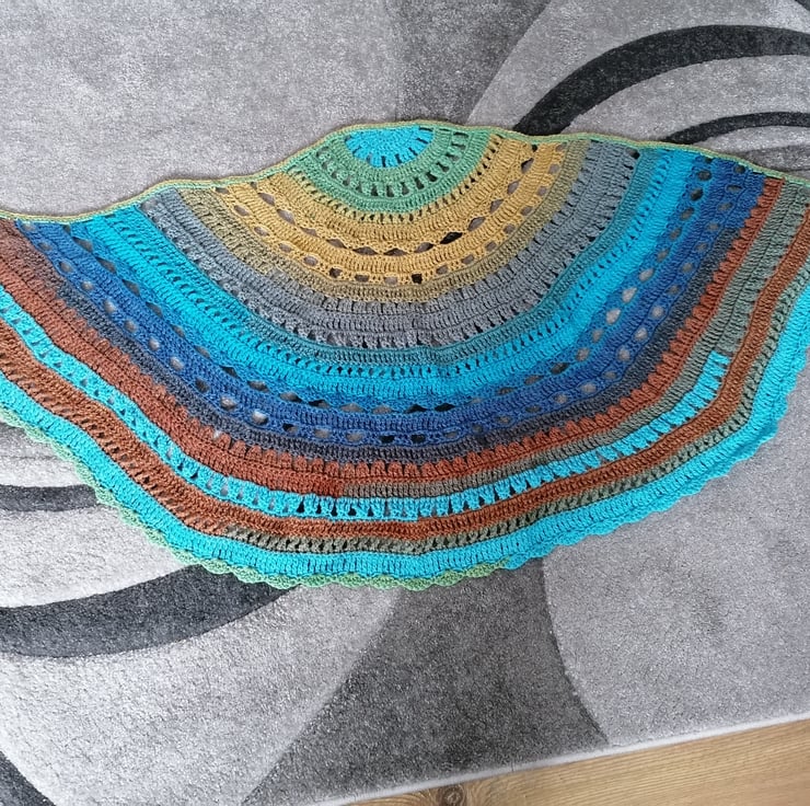 This hand crocheted shawl is perfect for those chilly winter or summer evenings. It is fully washable.