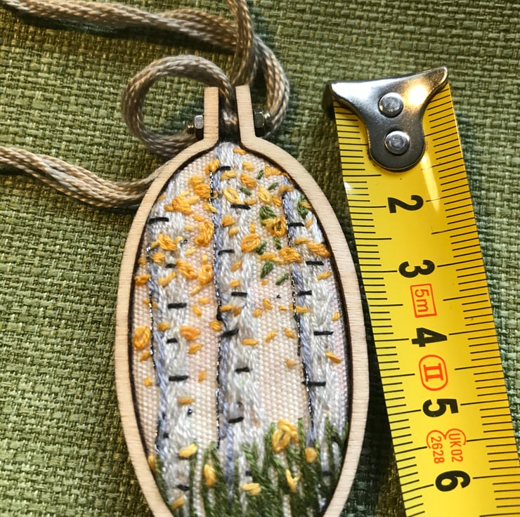 This necklace is one of my 1st embroideries. I wanted to make something to appeal to my work colleagues when i was doing a craft Fair at work and so mini hoop necklaces were born.