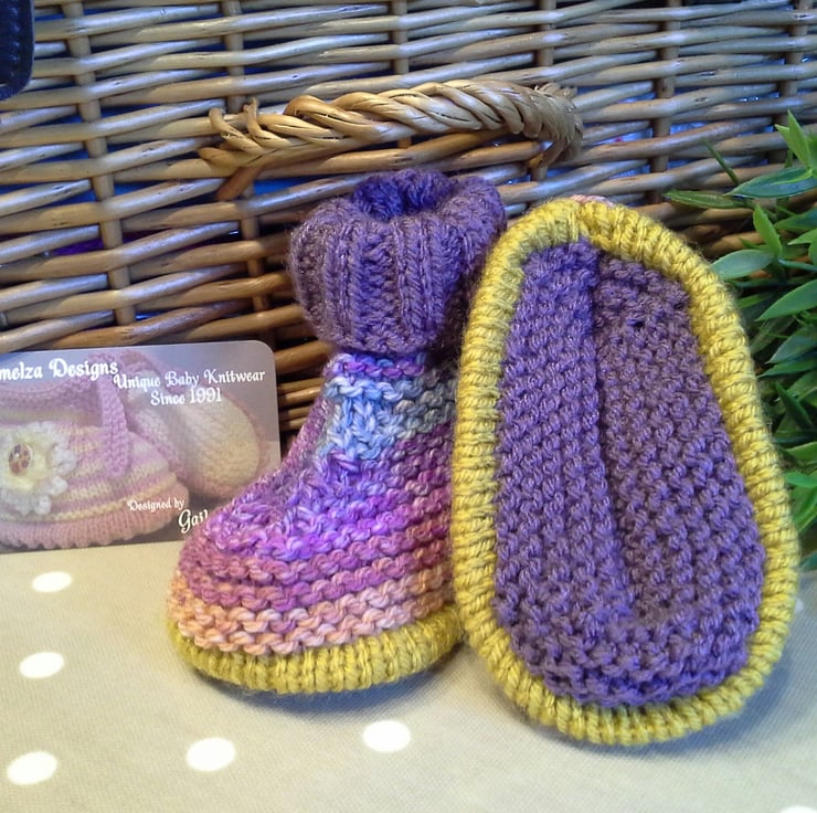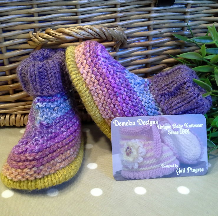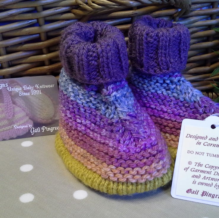 These booties/slippers are protected by copyright design, including images, artwork, different yarn types and colourways.