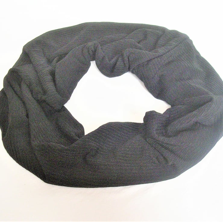 A medium weight, cowl or loop scarf in black ribbed polyester jersey fabric. No 151