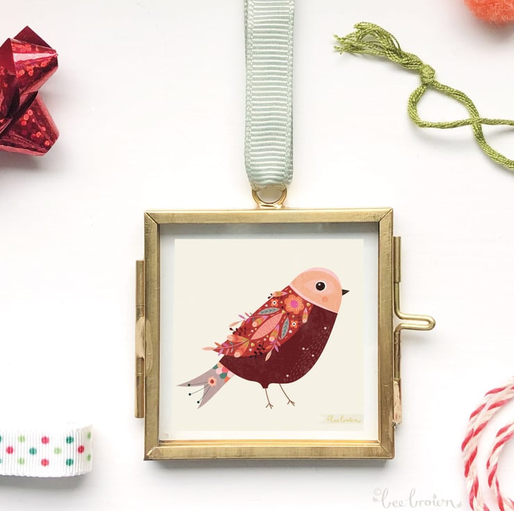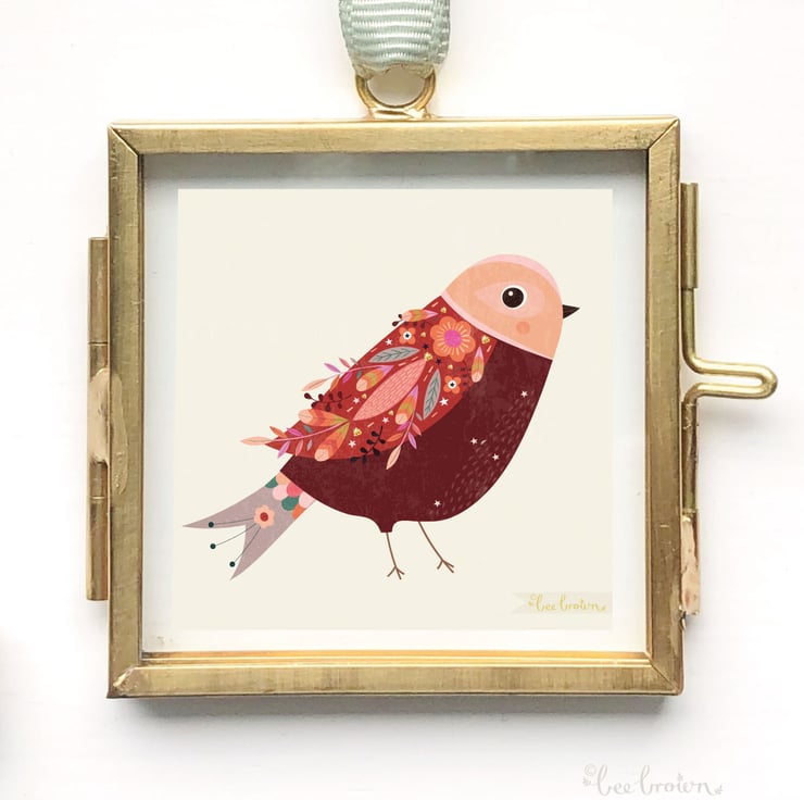 The tiny illustration is a full colour print taken from an original drawing by illustrator Bee Brown and is hand embellished with gold ink.