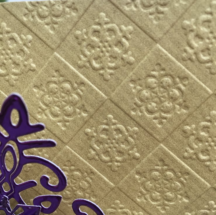 The embossing pattern comes from Crafters Companion.
