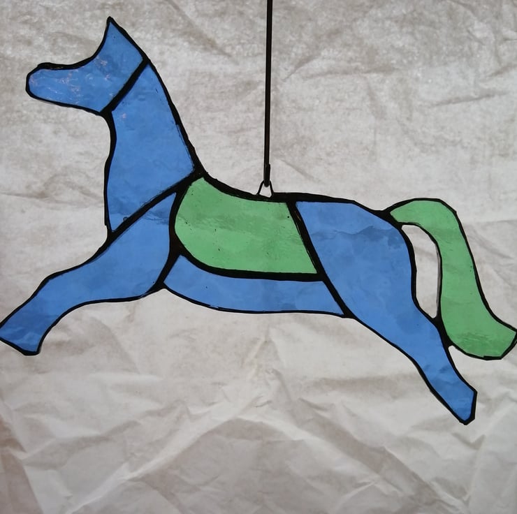 Stained Glass Fairground Horse - Blue and Green