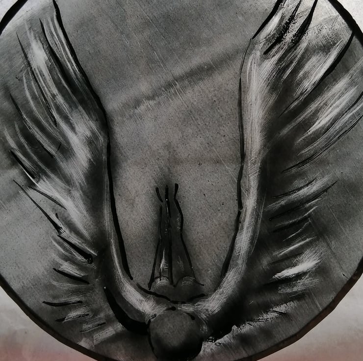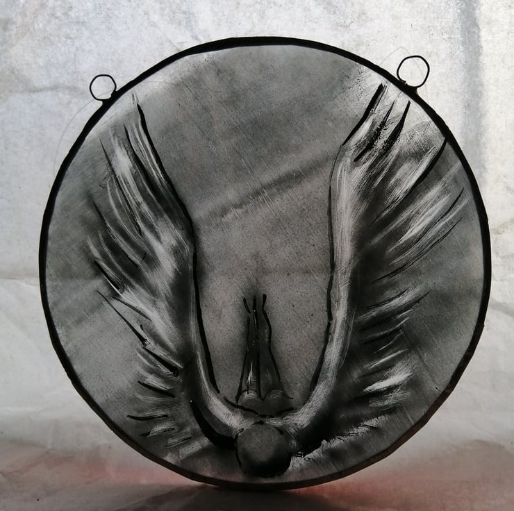 I was inspired to illustrate spiritual experiences as encouragement and I chose black on clear glass because I felt these semi transparent images depict another reality which is parallel to the physical world but which we cant physically see.