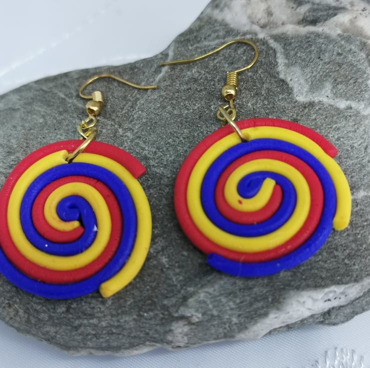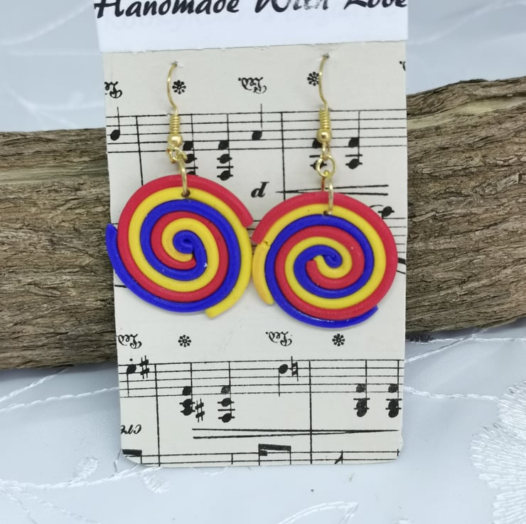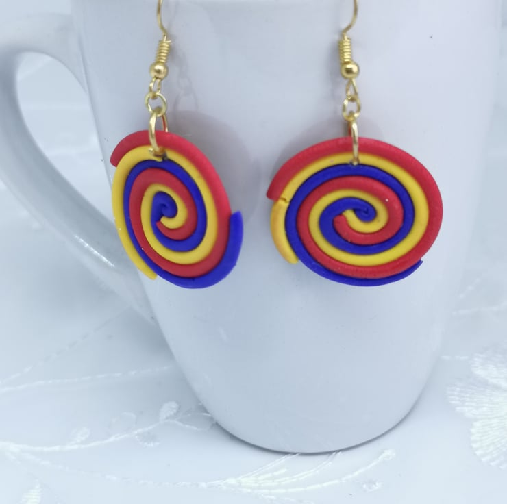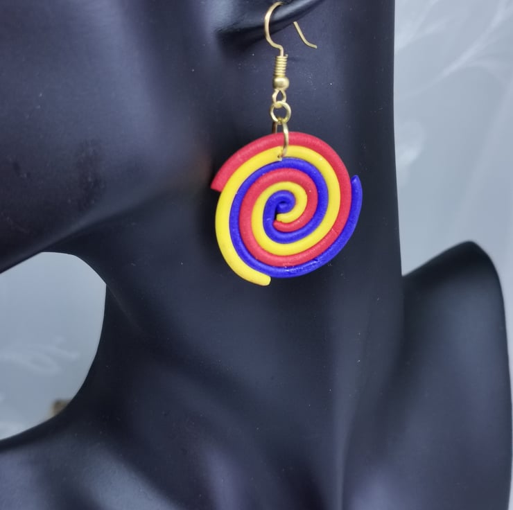 After pushing primary coloured clay through an extruder to make spaghetti strands, I spun them together to make these funky babes.
