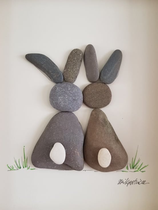 Two Bunnies is a unique pebble art creation by me, Sophie Kirkpatrick.