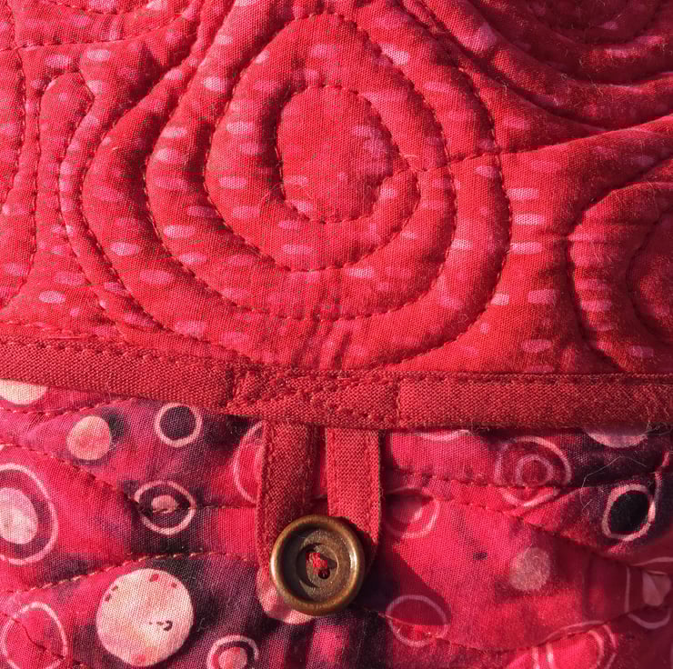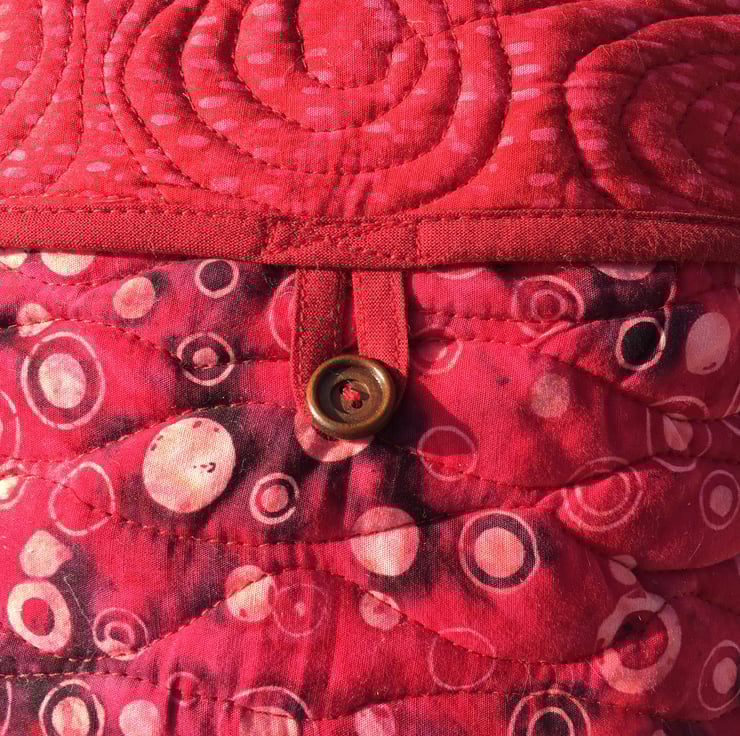 The bottle is padded like a quilt and consists of 4 layers. 2 layers of fabric and 2 layers of wadding. I have freehand machine embroidered it for that special look.