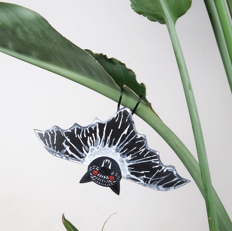 This creepy cute art is fully made by hands with love and huge attention to details. Made of pine wood & hand painted with acrylic paints. Varnished - semi gloss finish. Back is plain black.
