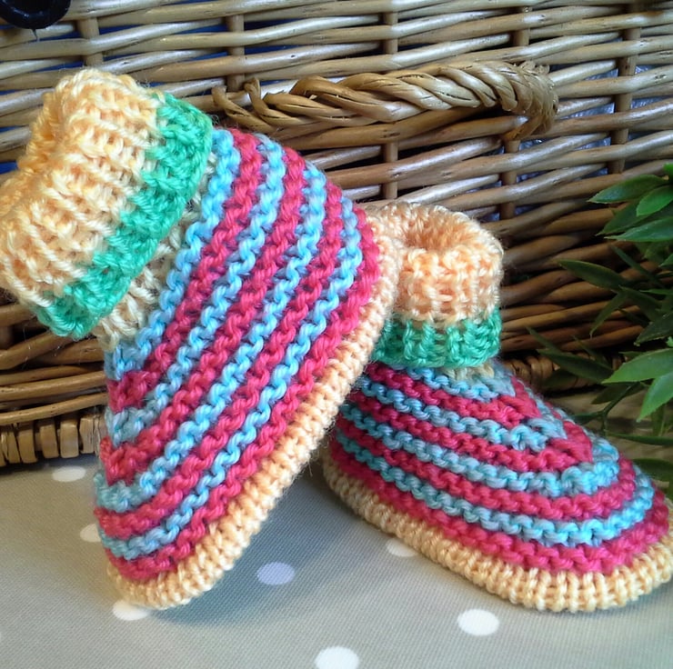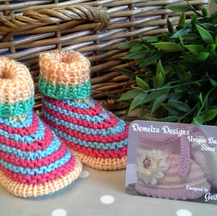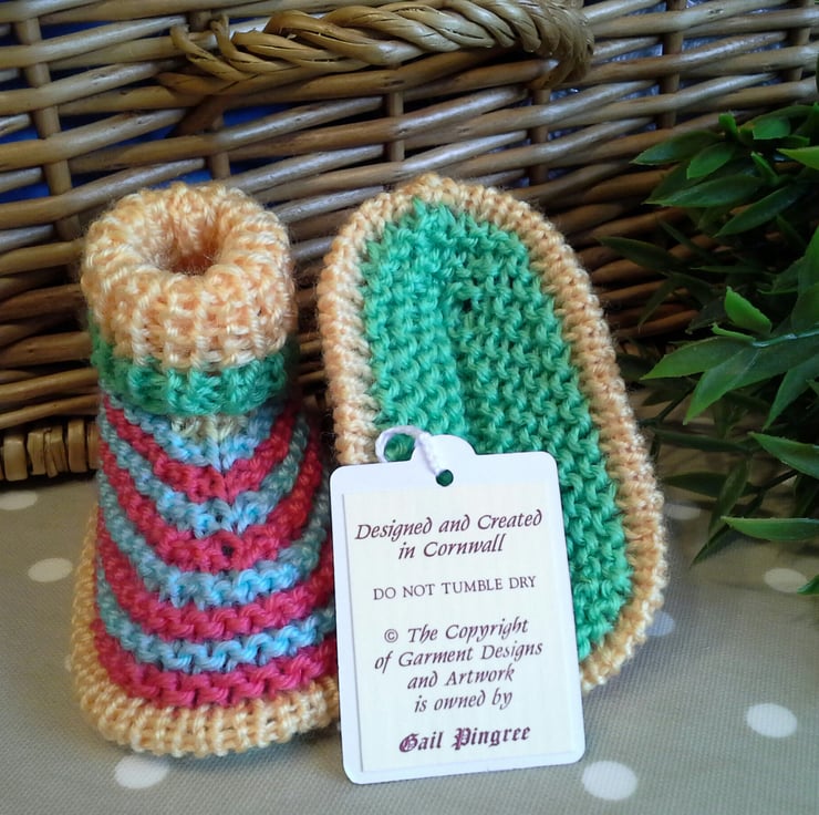A fabulous funky pair of unisex booties lovingly designed and totally hand crafted using quality branded British machine washable acrylic yarns.