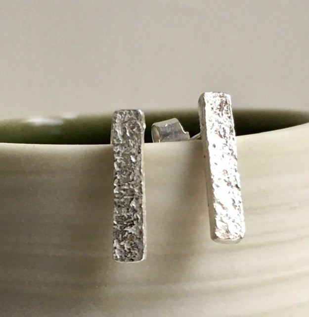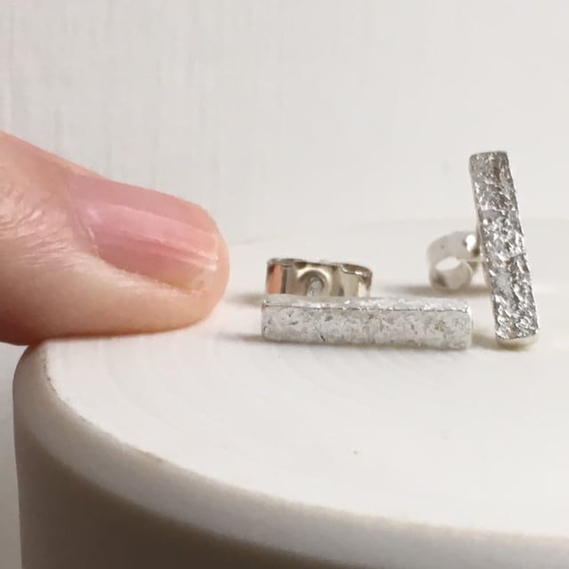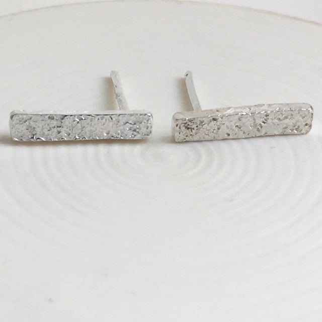 These handmade ecosilver studs have been hand hammered against stone to give texture with subtle sparkle. They are perfect for everyday wear yet look great dressing up any outfit too.