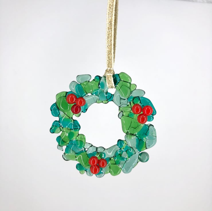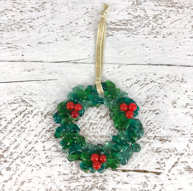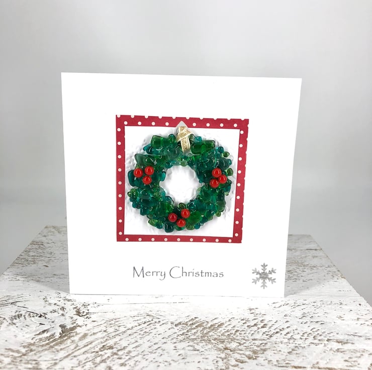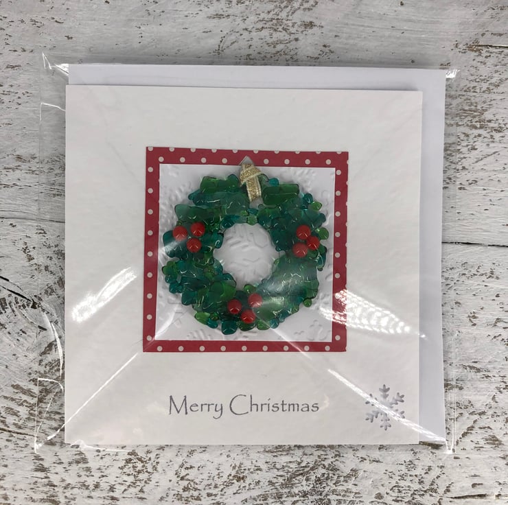 A lovely handmade card with a gorgeous glass holly wreath decoration - the perfect card and gift in one!
