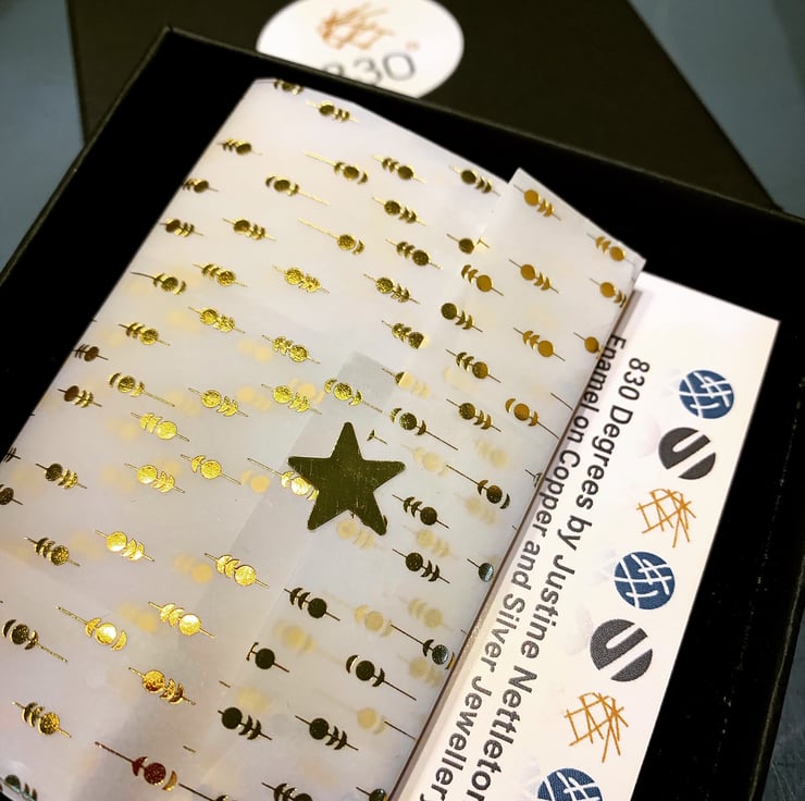 I love the contrast of the textured copper against the shiny colourful enamel and the motifs of nature.