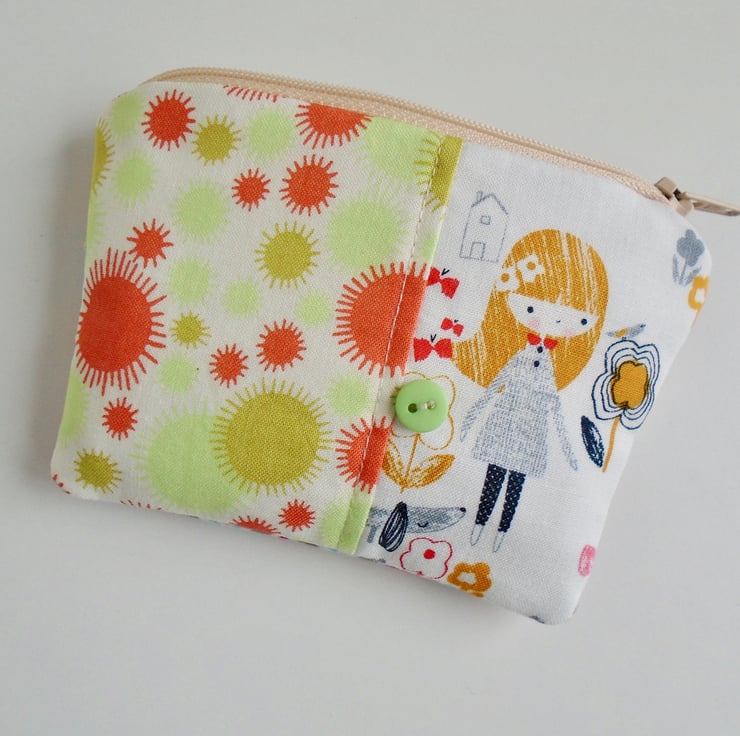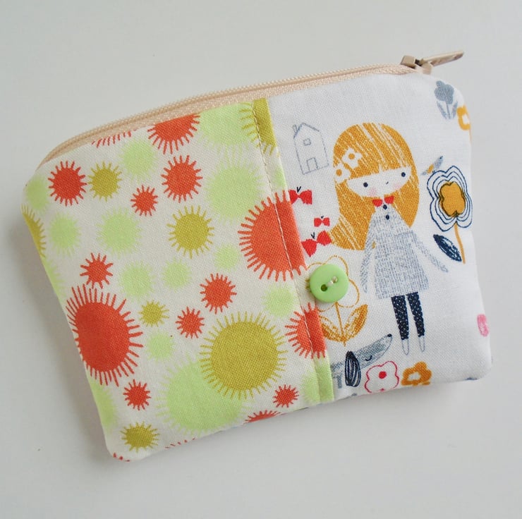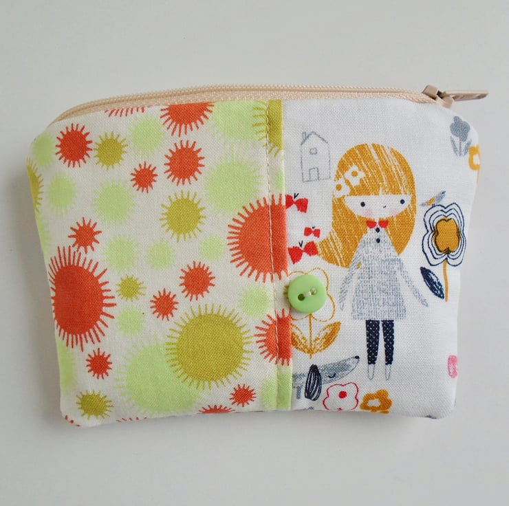 A very cute coin purse , ideal for some of your loose change / store card/ debit card , also ideal as a mini make up bag .