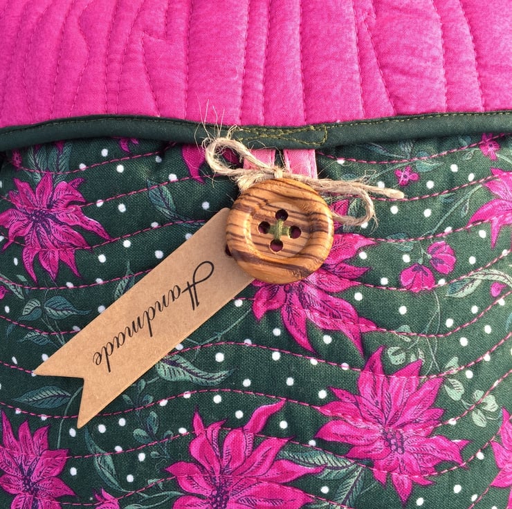 The bottle is padded like a quilt and consists of 4 layers. 2 layers of fabric and 2 layers of wadding. I have freehand machine embroidered it for that special look.