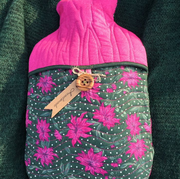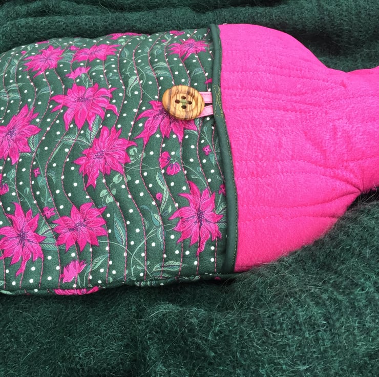 Snuggle up with this quilted, pretty hottie cover, - fits standard 2L bottles. Keep comfortable and warm inside, when it is cold and uncomfortable outside. This cover also make a perfect gift for the festive season. (Other colours and different patterns available - see my other listenings)