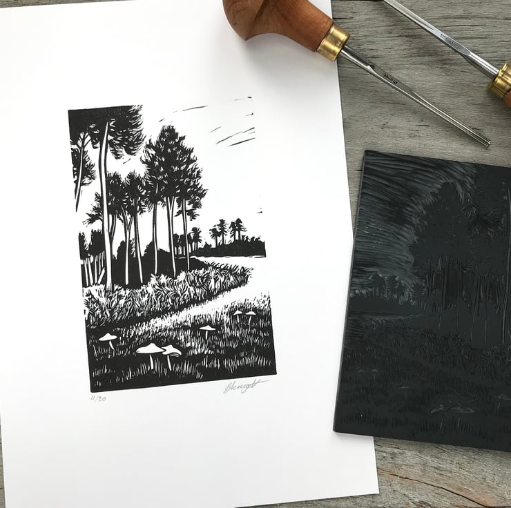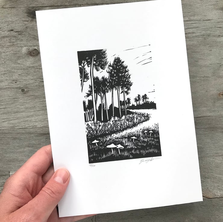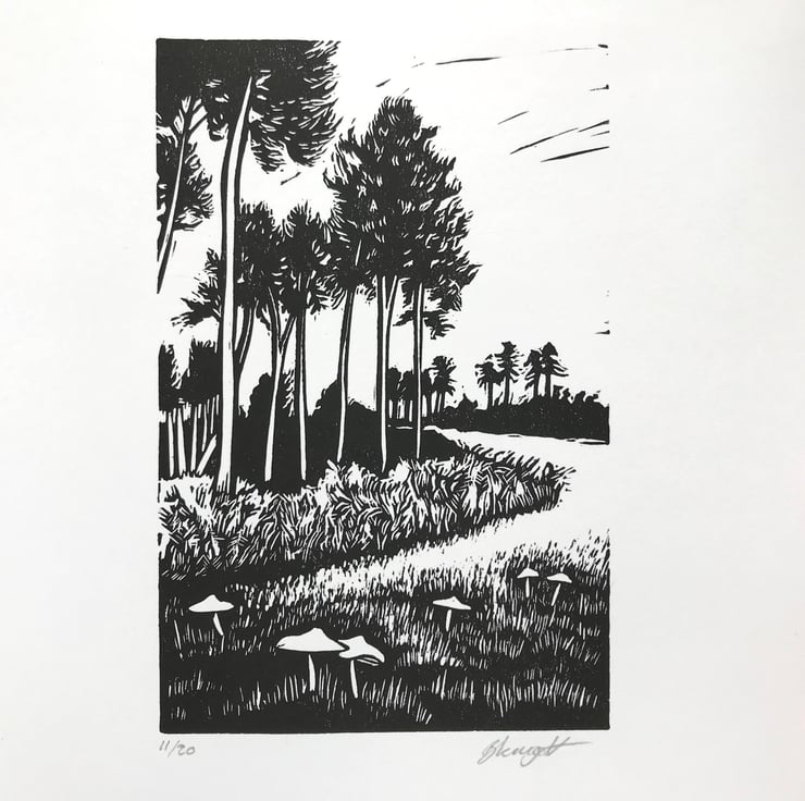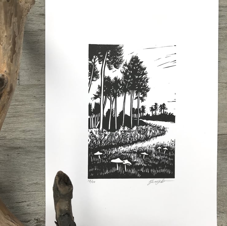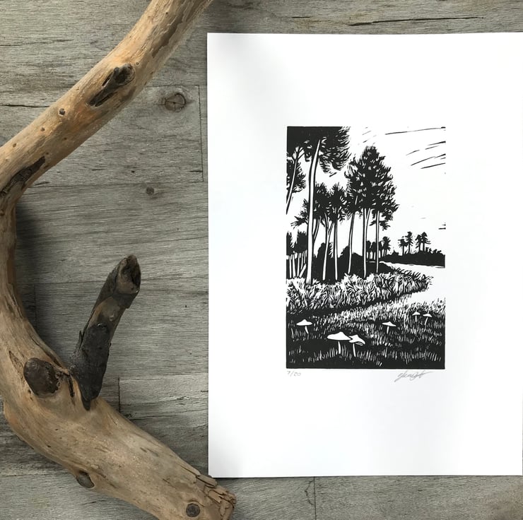"This print is inspired by visits to Rendlesham Forest in Suffolk, a mystical place that feels a bit out of this world!"