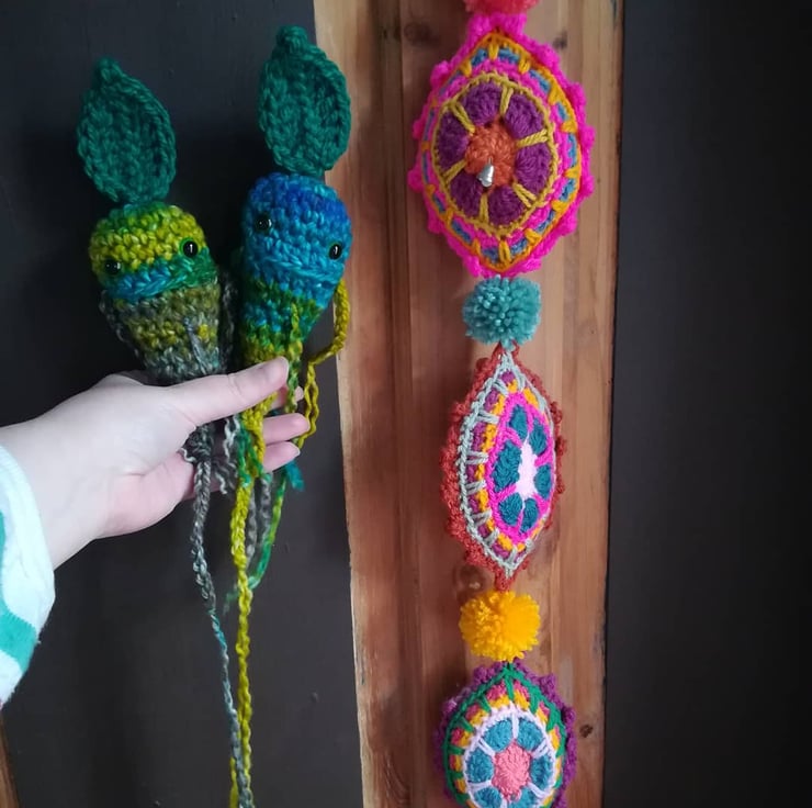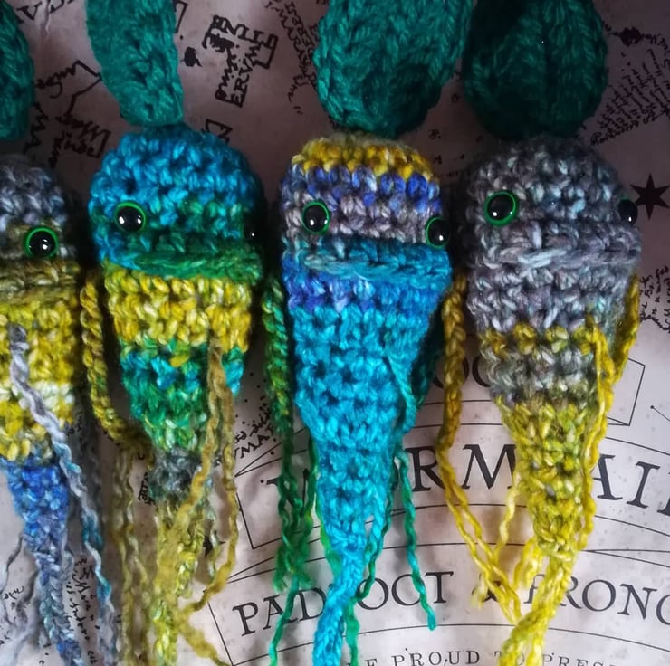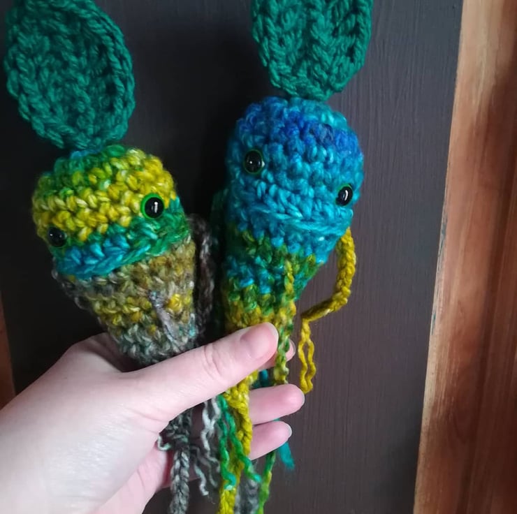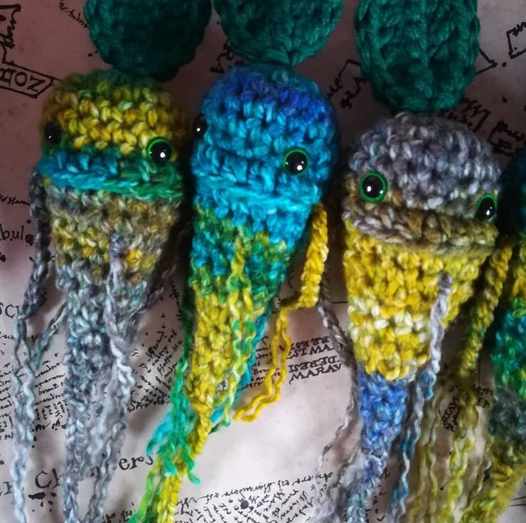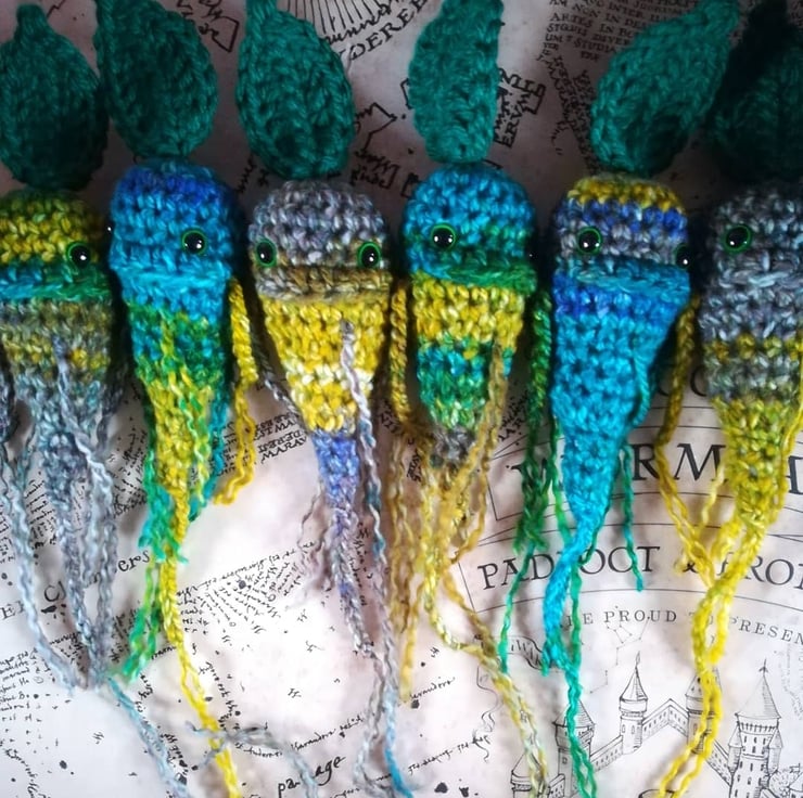 These limited edition mandrake seedlings are made using a beautiful mottled yarn in shades of green, blue and grey.
