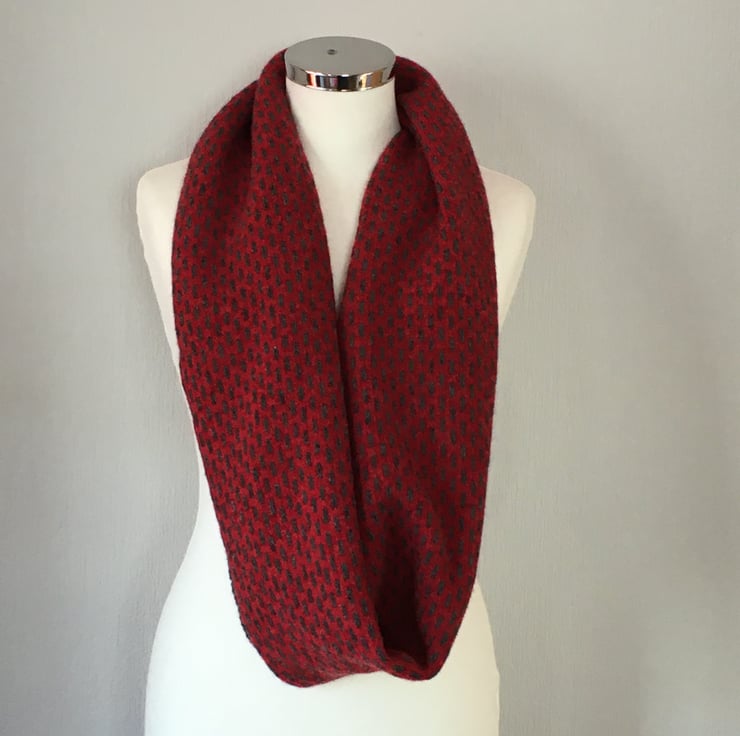 Soft British spun merino lambswool beautifully knitted snood infinity scarf.