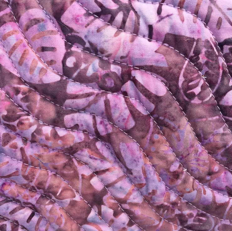 The bottle is padded like a quilt and consists of four layers. Two layers of fabric and two layers of wadding. I have freehand machine embroidered it for that special look.