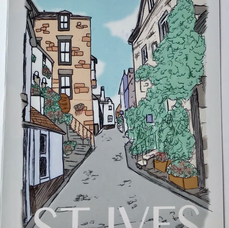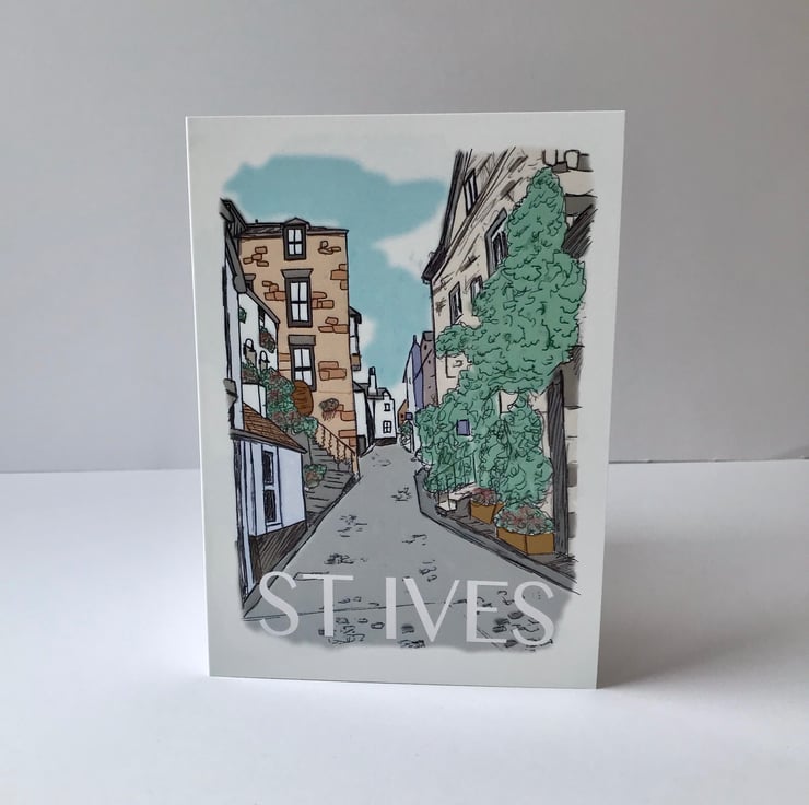 This card is a reproduction of one of my digital drawings of the iconic Bunkers Hill in St Ives, Cornwall. Drawn using my own photographs, the poster-style encapsulates the joys of Cornwall.