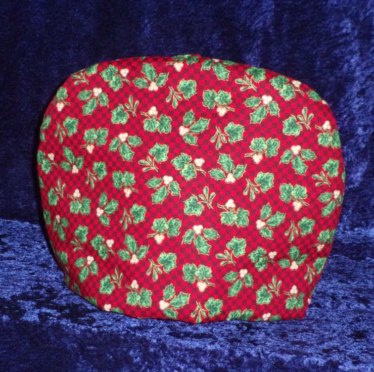 This fabric tea cosy is suitable for a 6 cup (1.5L) tea pot. It features a design of Holly, Ivy and Mistletoe on a red background. It is fully machine washable and the wadding will not bunch during the washing process as it is stitched to the lining fabric. Perfect for keeping your teapot hot for a couple of hours.