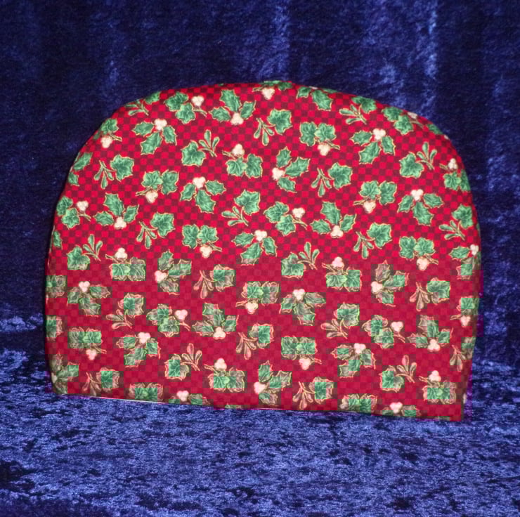 This fabric tea cosy is suitable for a 6 cup (1.5L) tea pot. It features a design of Holly, Ivy and Mistletoe on a red background. It is fully machine washable and the wadding will not bunch during the washing process as it is stitched to the lining fabric. Perfect for keeping your teapot hot for a couple of hours.