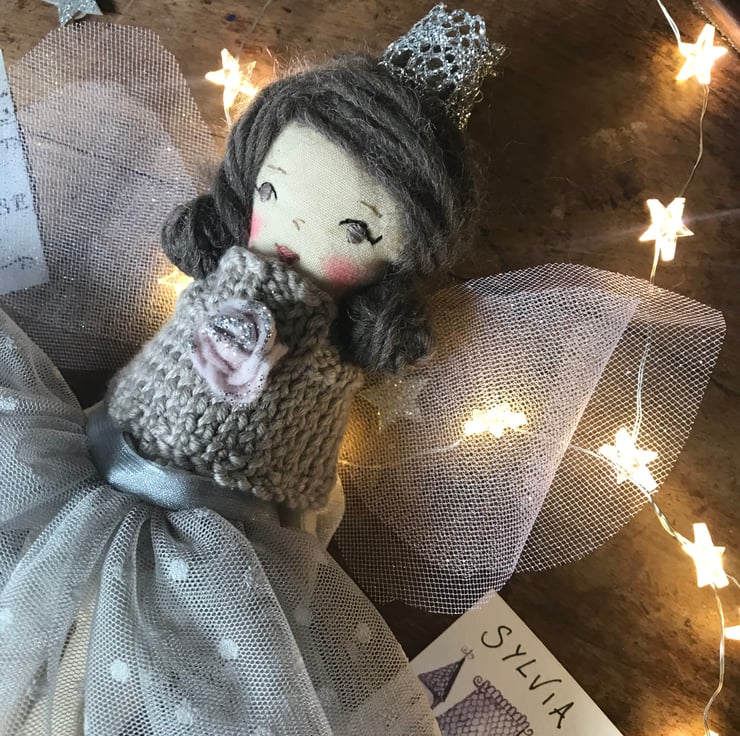 Sylvia is approx 10" tall and hand made by Erica-Jane Waters. She is stitched from cotton and her fairy skirt is gorgeous floaty tulle.