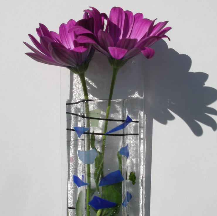 Bring the garden inside with this fused glass wall vase. The Cornflower design comes in shades of blue to suggest the delicate flowers of this classic summer plant.