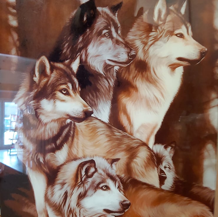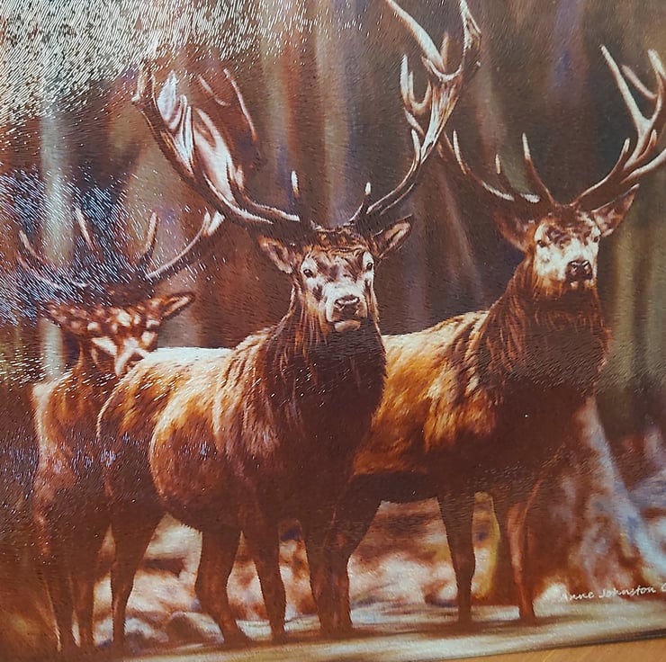 A textured glass chopping board/ worktop saver featuring a print of one of my original paintings.