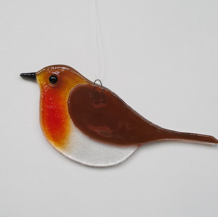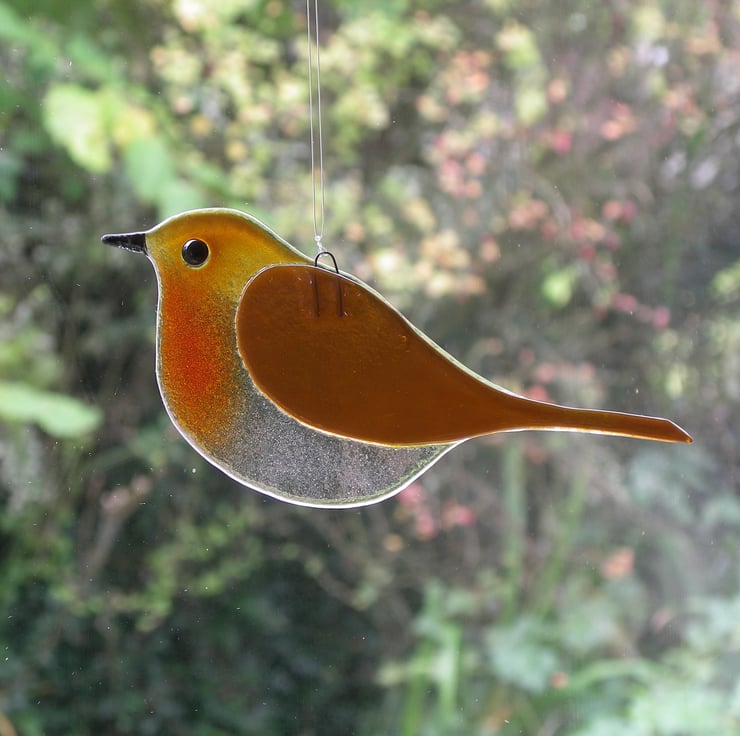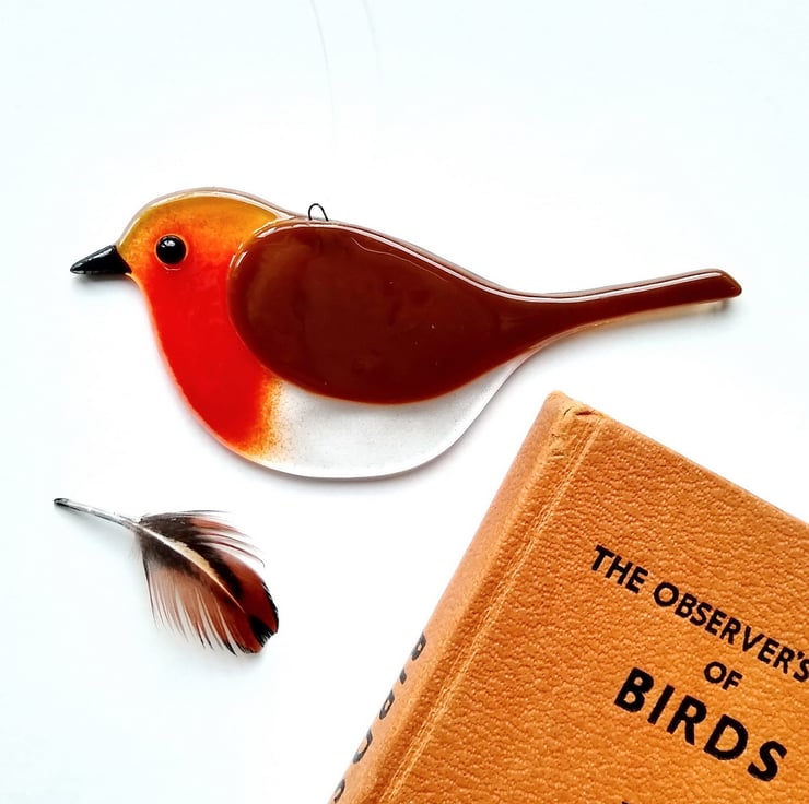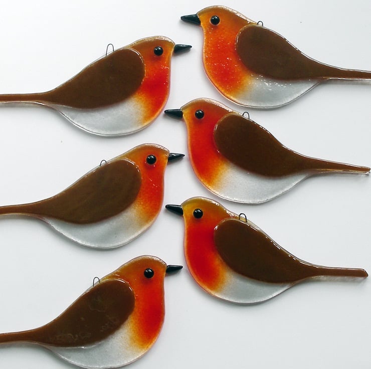 Right outside my workshop window is the bird feeder so I can watch its visitors when I look up from whatever is being created. The robins are there every day whatever the weather and have inspired these glassy replicas.