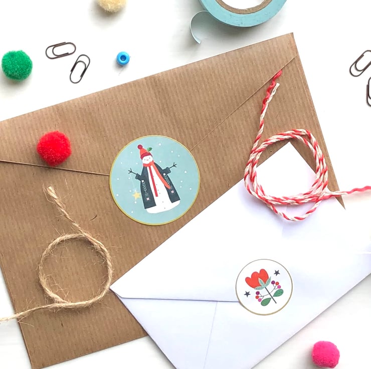 A lovely set of 6 quality stickers comprising of a snowman, owl, rabbit, little bird, christmas folk flower and love heart. All uniquely designed by Bee Brown.