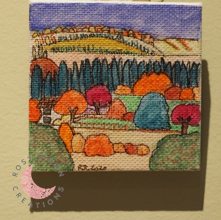 This painting is taken from a photo I took looking over the Surrey Hills. I was inspired by the richness of the warm autumn colours which are always so rich and intense.