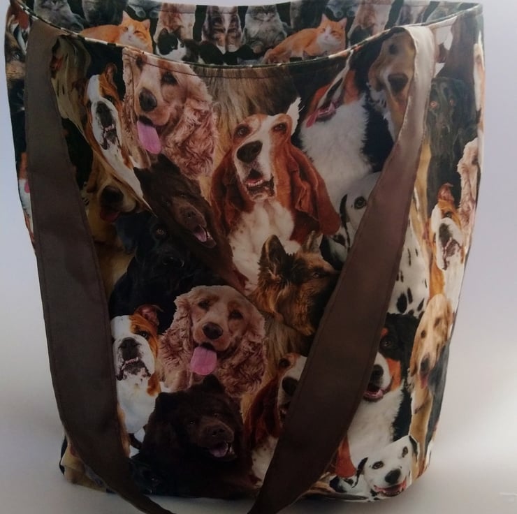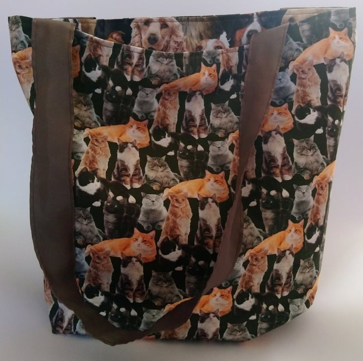 This tote bag has been made from a cat fabric on one side and a dog fabric on the other. You get two bags in one! Are you a dog person or a cat person? If you can't decide, this is the bag for you...