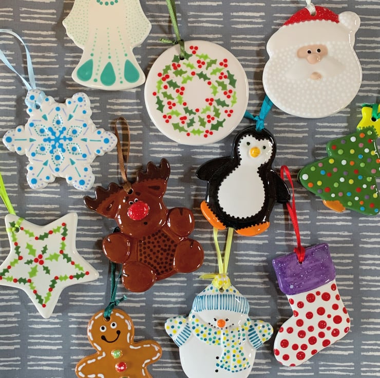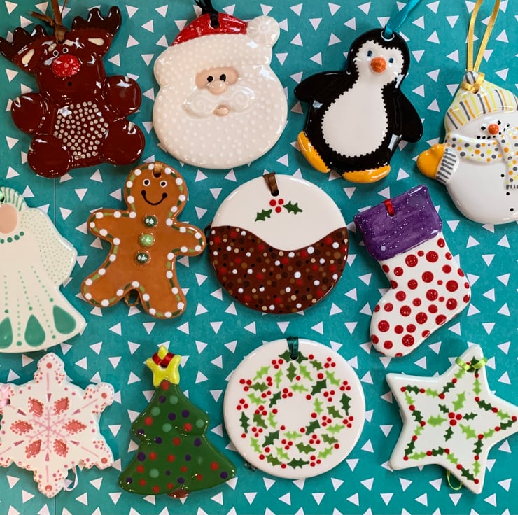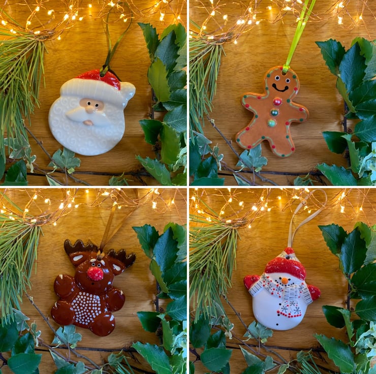 Welcome to my range of hand painted ceramic Christmas decorations that make a perfect Christmas gift. Hang them on the Christmas tree even from a cupboard knob for a fun, festive twist.
