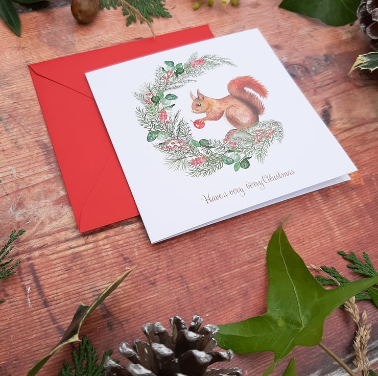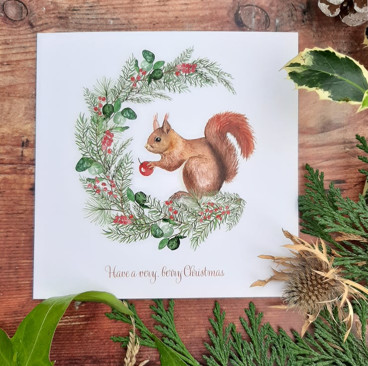 This little red squirrel loves to decorate her tree with berries she finds, don't you agree she has done a beautiful job?! Each card in the Festive Friends Wreath Collection features an intricate watercolour wreath with beautiful winter foliage and a cute character with its very own pun. The perfect way to send season's greetings this year.