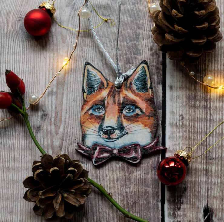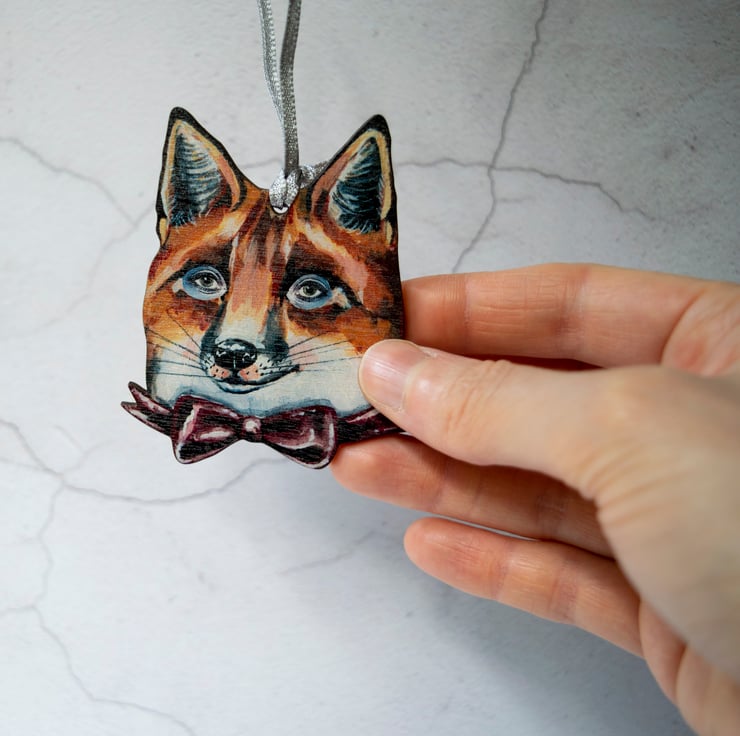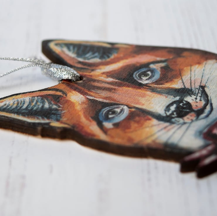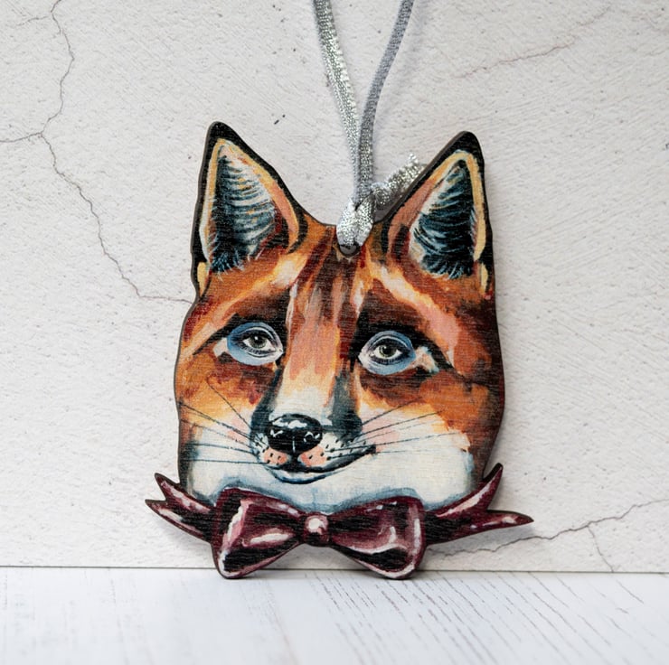 The fox has been made from a premium grade wood which has been UV printed with my illustration and then laser cut within the UK. The grain of the wood is visible through the print, which is very different to my usual wooden hanging decorations, so there may be a slight difference from that pictured.