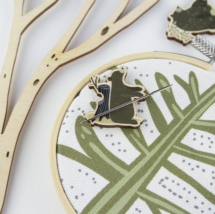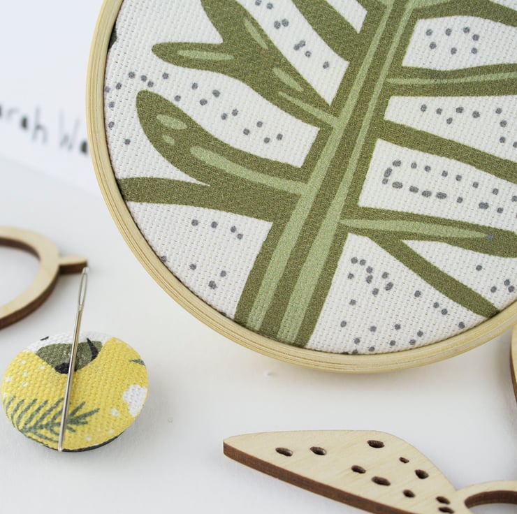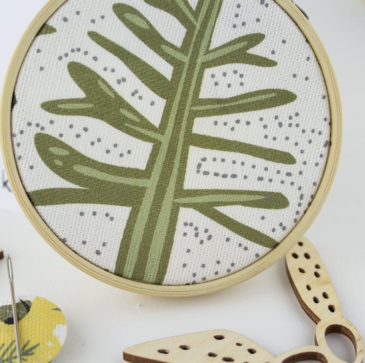 Woodland tree fabric designed by us and mounted in a wooden embroidery hoop. The fabric is heavyweight half panama 100% Cotton. All our fabrics are also available to buy by the metre. The hoop and fabric can be used as an embroidery project, or simply hung on the wall as it is. The hoops look great as a collection, please see other listings. The hoop makes a lovey gift for a crafting friend, or new home gift. It's also a great way to send a crafting gift to someone. Other woodland embroidery accessories shown are available please see my other listings.